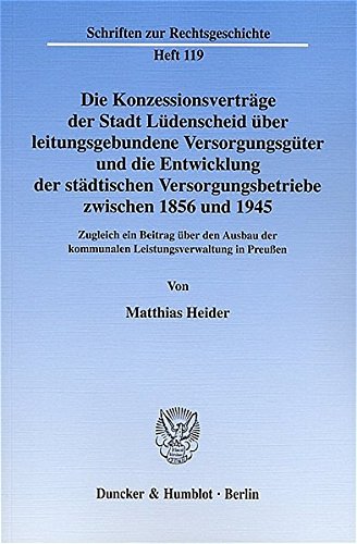PDF Die Konzessionsverträge der Stadt Lüdenscheid über leitungsgebundene Versorgungsgüter und die Entwicklung der städtischen Versorgungsbetriebe zwischen ... in Preußen. (Schriften zur Rechtsgeschichte) Download